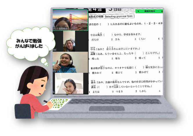 今回は、弊組合札幌事務所の職員が、北海道の実習生・特定技能外国人の皆さんを対象に「オンラインJLPT対策講座」を開催しました。10月から全8回にわたって、N4とN3それぞれレベル別に、週1回、業務後の時間に各2時間ずつ実施しました。